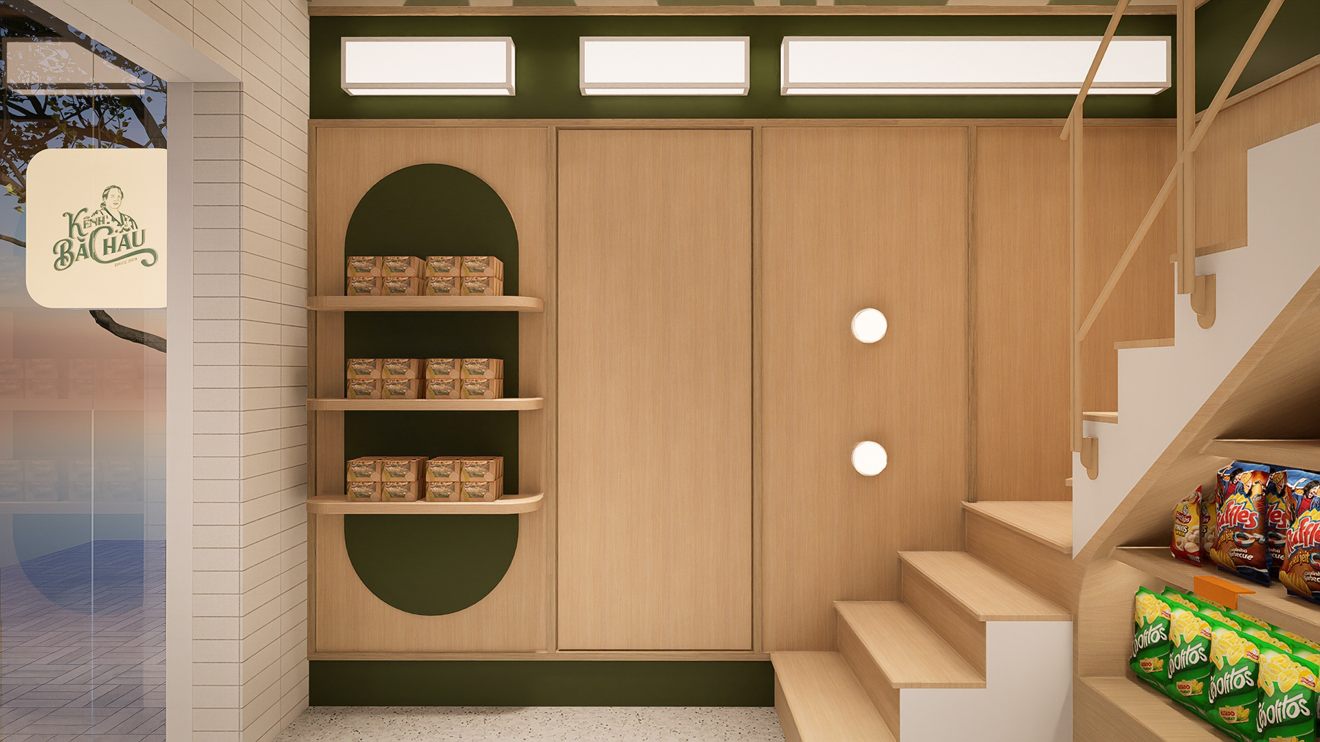 Trong quá trình cải tạo cửa hàng Kênh Bà Châu, CGK lựa chọn nhóm vật liệu mang tính thẩm mỹ , bền vững, phù hợp với tần suất giao – nhận hàng cao và yêu cầu vệ sinh nghiêm ngặt của mô hình kinh doanh thực phẩm.